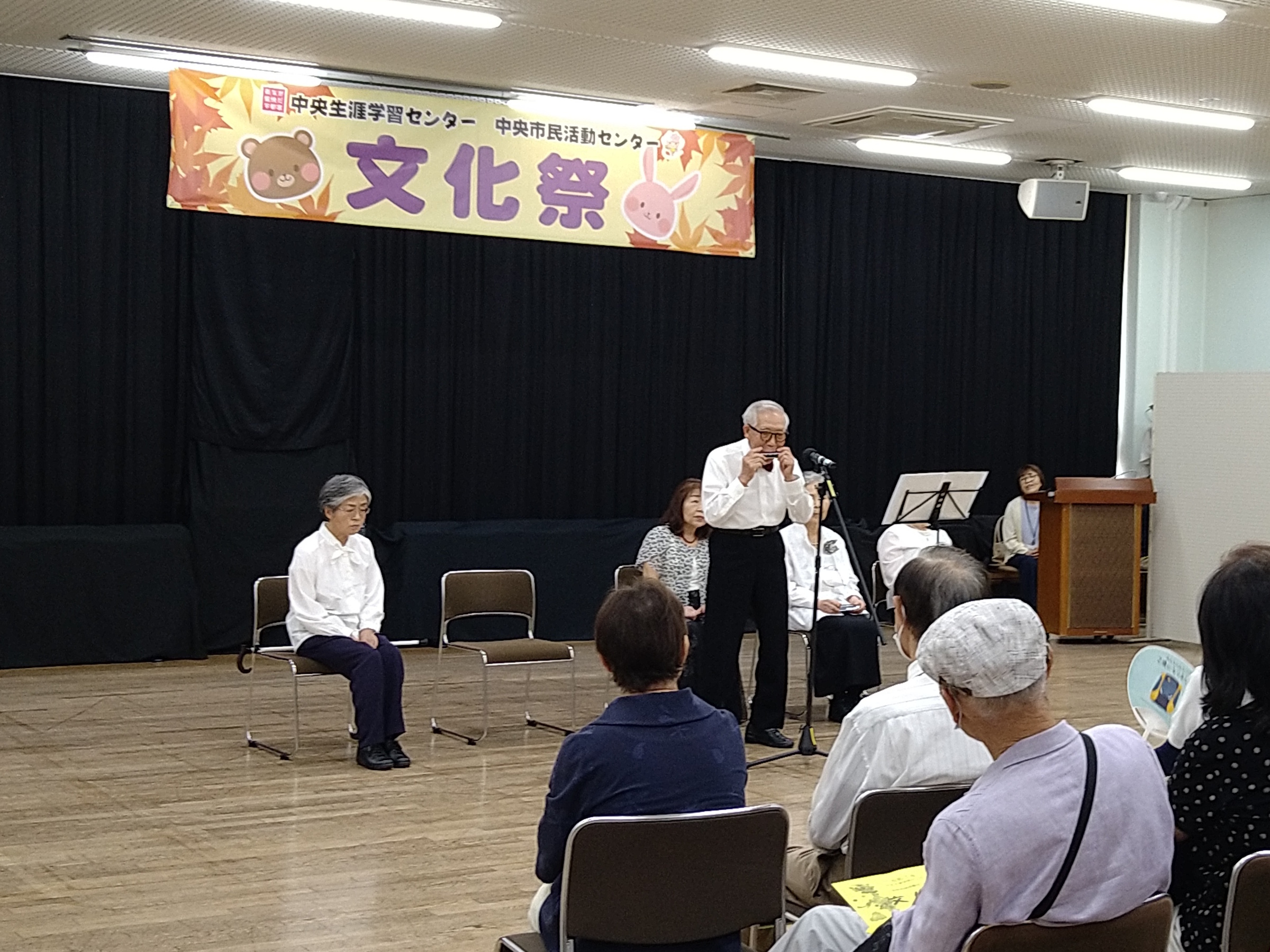 10月になりました先日(9/27)は宇都宮中央生涯学習センターの文化祭にハーモニカサークル・マロニエのメンバー4名が初めて参加し、それぞれ独奏を披露しました。 初めてハーモニカの演奏を聴いてくださった他のサークルの皆さんはベース奏法、バイオリン奏法、分散和音奏法の入ったハーモニカの多彩な音色を、驚きと共に楽しんで聴いてくださいました。 |