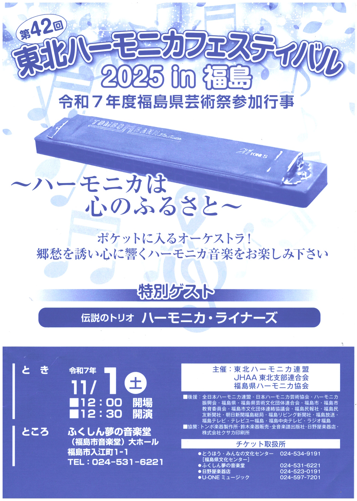 今年度の「東北ハーモニカフェスティバル」が11月1日に福島で開催されるという知らせを聞き、是非聴いてみたいと思って行ってきました。