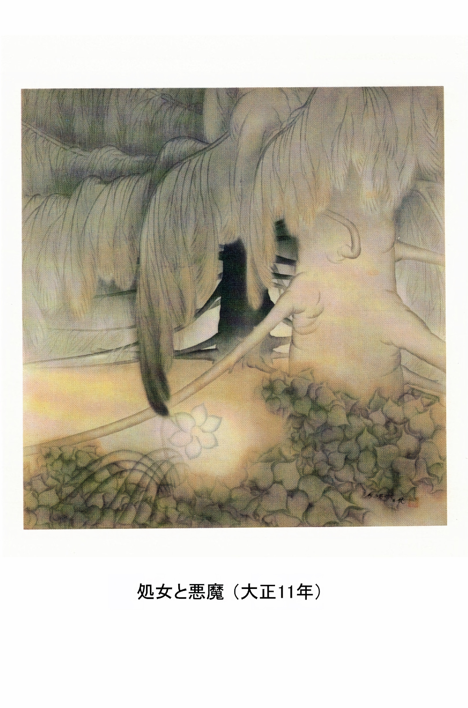 そこに書かれている「処女と悪魔」の絵葉書とその絵の前で撮られた佐藤先生のお写真を私の知人からお借りしましたのでご紹介します。佐藤先生88歳の時です。